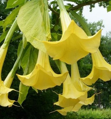 Stora, ljust gula, hängande trumpetblommor med behaglig väldoft. Stadiga, snabbväxande plantor som odlas bäst i krukor på varm, skyddad växtplats, gärna utomhus på sommaren.