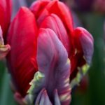Denna papegojtulpan är riktigt mörkt röd med inslag av purpur och grönt.